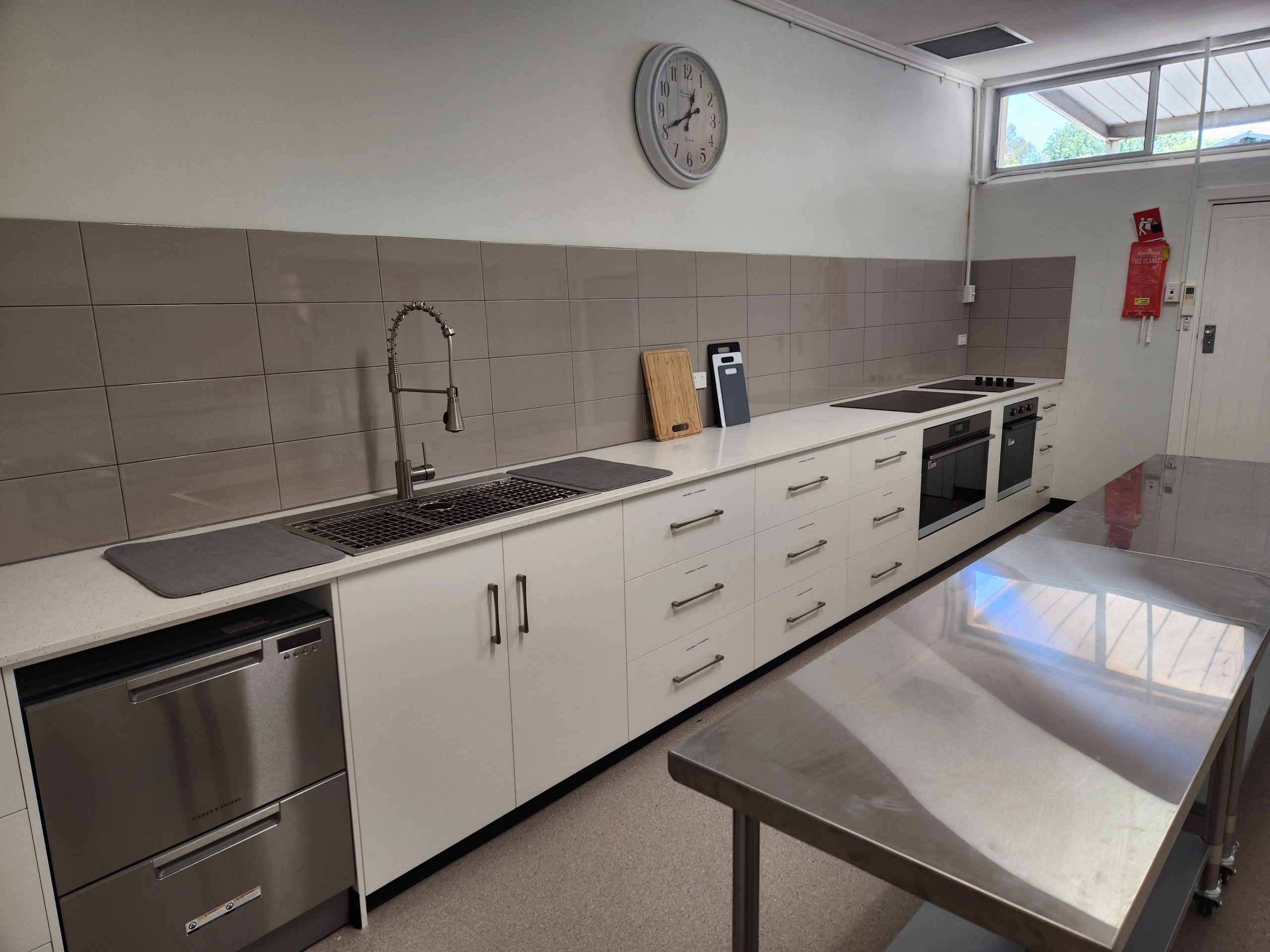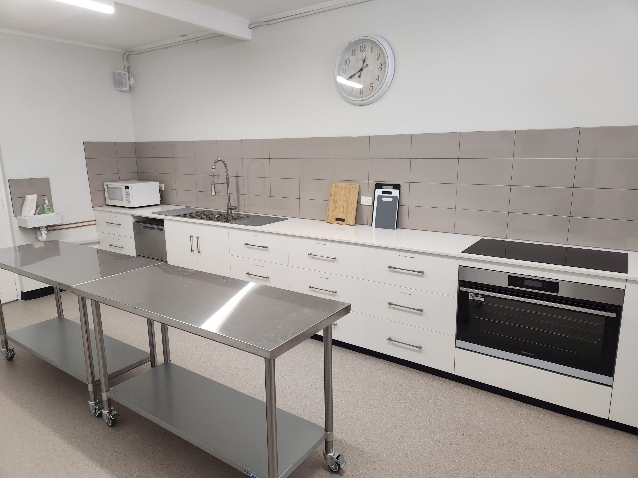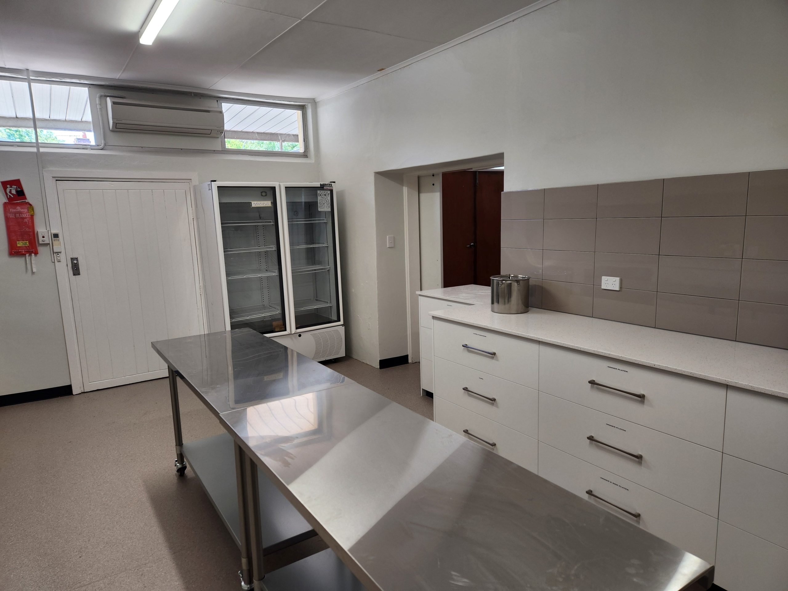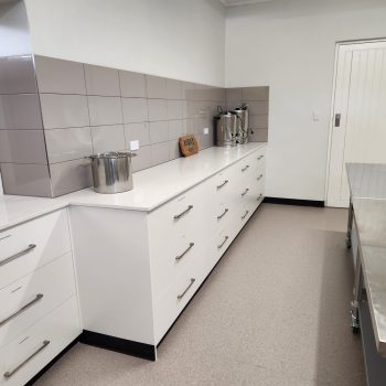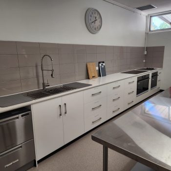 Kitchen – The kitchen has now been fully upgraded into a modern, well-equipped space featuring new appliances, expanded bench areas, and a more efficient layout. Designed for community events and private hire alike, it now offers improved functionality, accessibility, and style to support everything from workshops to weddings and celebrations.