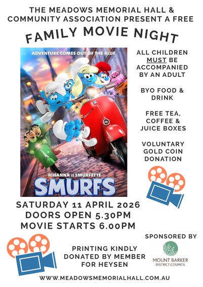 If you have any feedback regarding our movie events, please email us at admin@meadowsmemorialhall.com.au